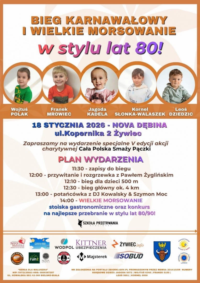 Udział w wydarzeniu to realne wsparcie dla podopiecznych Fundacji „Serca dla Maluszka”: Wojtusia, Franka, Jagody, Kornela i Lesia. Zbiórka jest zarejestrowana na portalu zbiorki.gov.pl (nr 2014/15/OR).