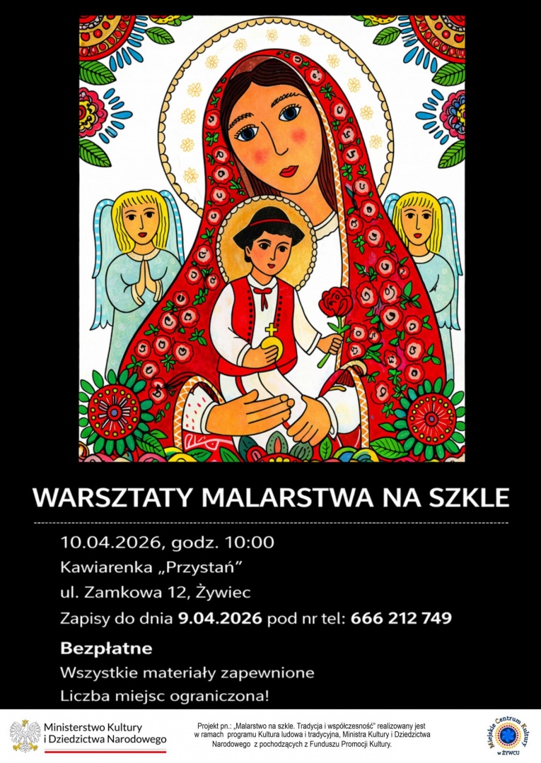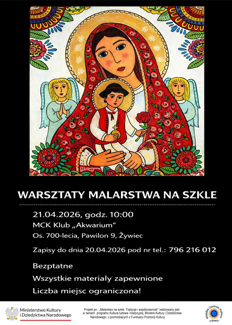 Ponadto do 30 czerwca 2026 r. można zgłaszać prace do ogólnopolskiego konkursu malarstwa na szkle „Barwy Wiary i Folkloru” pod honorowym patronatem im. Józefa Hulki.